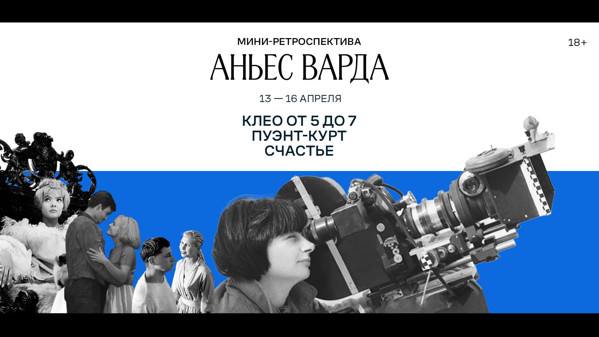С 13 по 16 апреля кинотеатр «Художественный» представит мини-ретроспективу фильмов Аньес Варда. Зрители увидят один из самых известных фильмов Варда, драму о времени и хрупкости жизни «Клео от 5 до 7», ее первую цветную ленту, мелодраму «Счастье», а также режиссерский дебют «Пуэнт-Курт», ставший предвестником французской «новой волны».